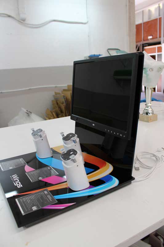 Fabricamos todo tipo de expositores de metacrilato a medida con una gran variedad de colores y la posibilidad de imprimir o grabar el logotipo, el texto o la imagen que prefieras.